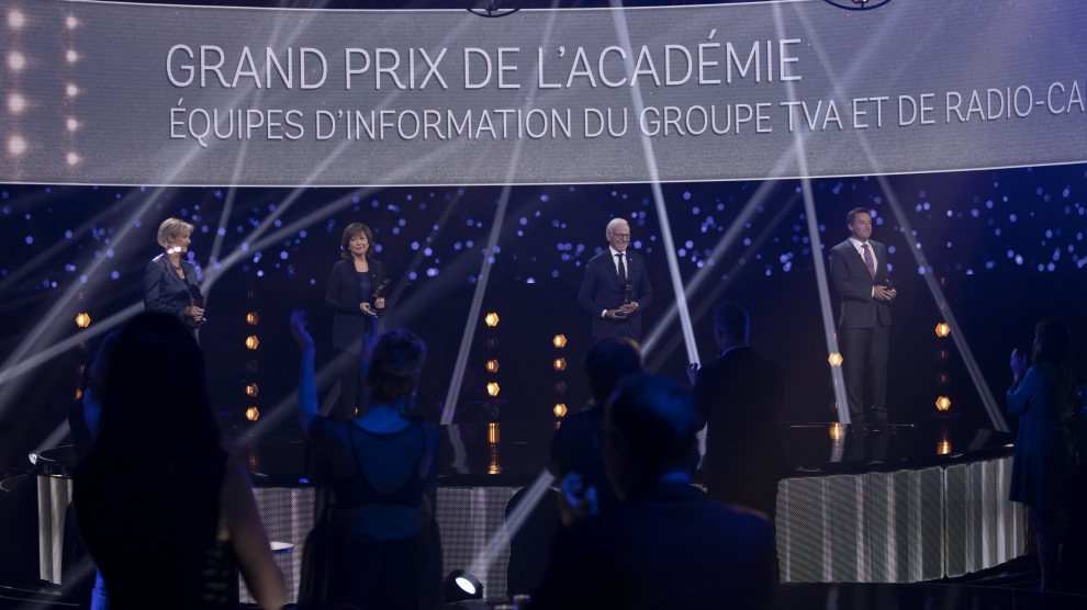 Lors du Gala des 35es prix Gémeaux, l’Académie canadienne du cinéma et de la télévision a remis exceptionnellement le Grand prix de l’Académie aux équipes d’information du Groupe TVA et de Radio-Canada. L’Académie a ainsi voulu souligner la contribution remarquable et le travail important de ces équipes en cette année extraordinaire marquée par la pandémie de COVID-19. Céline Galipeau et Patrice Roy pour Radio-Canada, Sophie Thibault et Pierre Bruneau pour le Groupe TVA étaient sur place pour accepter le Grand prix au nom de leurs collègues.
